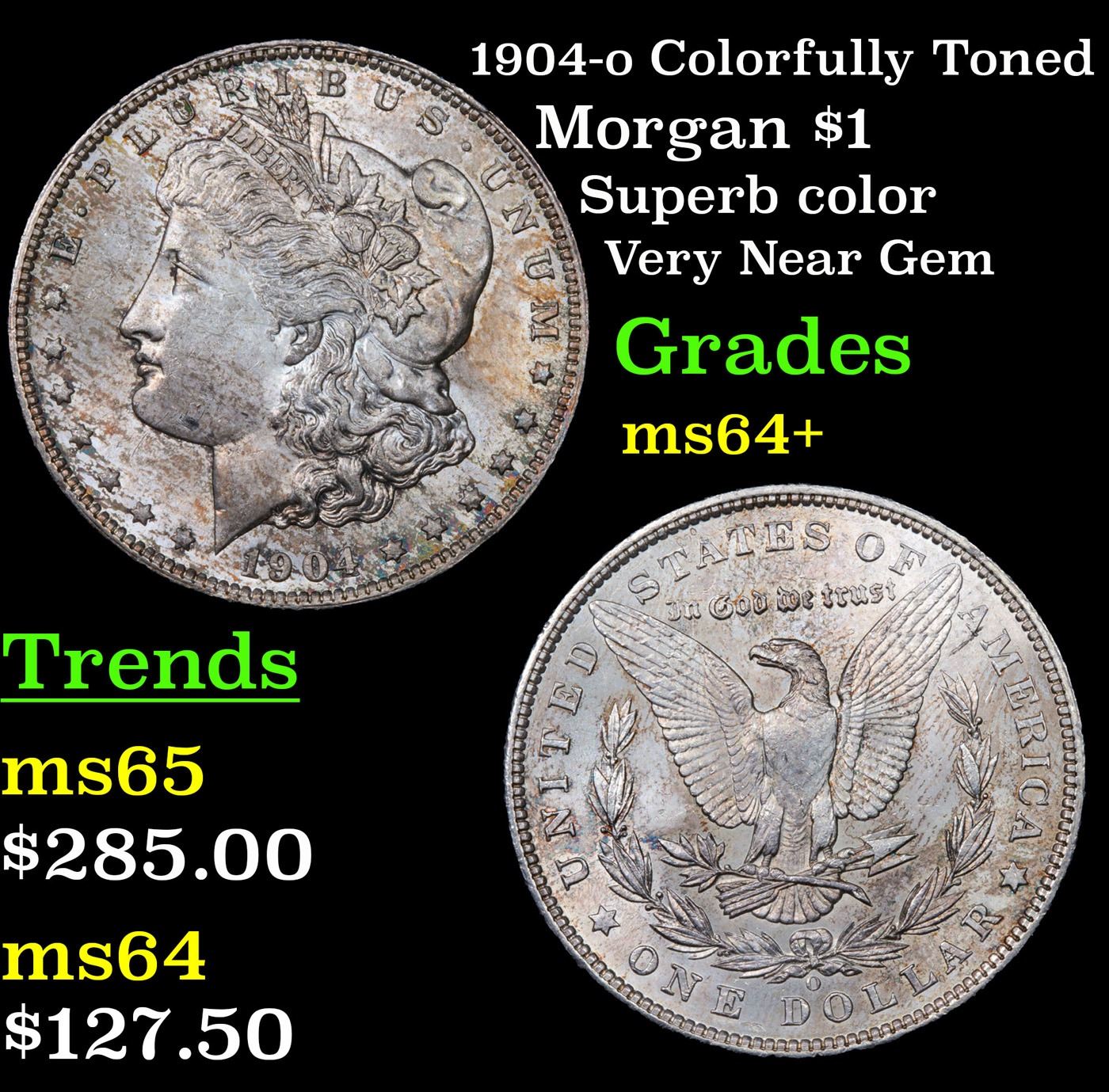 1904-o Colorfully Toned Morgan Dollar $1 Grades Choice+ Unc.