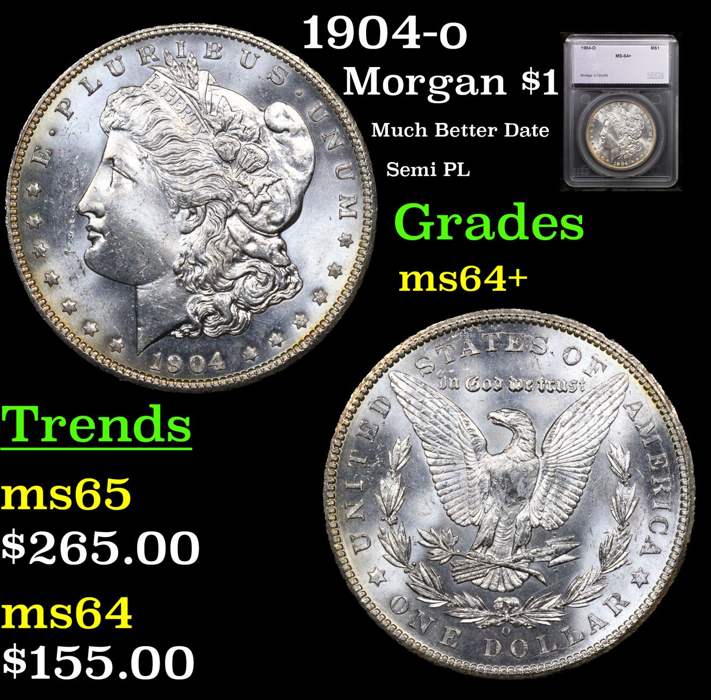 1904-o Morgan Dollar $1 Graded ms64+ By SEGS.