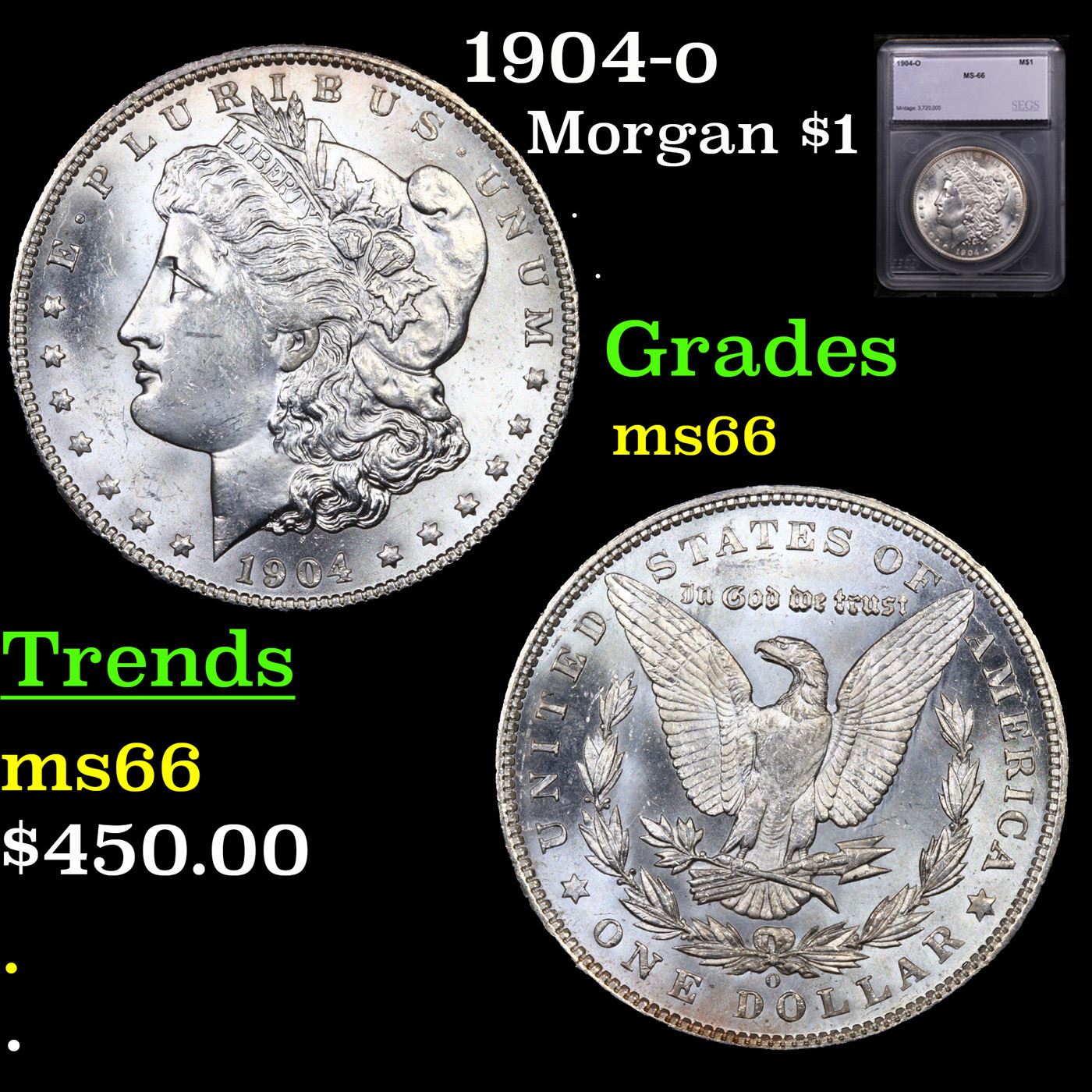 1904-o Morgan Dollar $1 Graded ms66 BY SEGS.