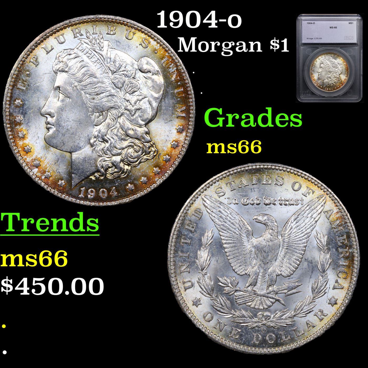 1904-o Morgan Dollar $1 Graded ms66 By SEGS.