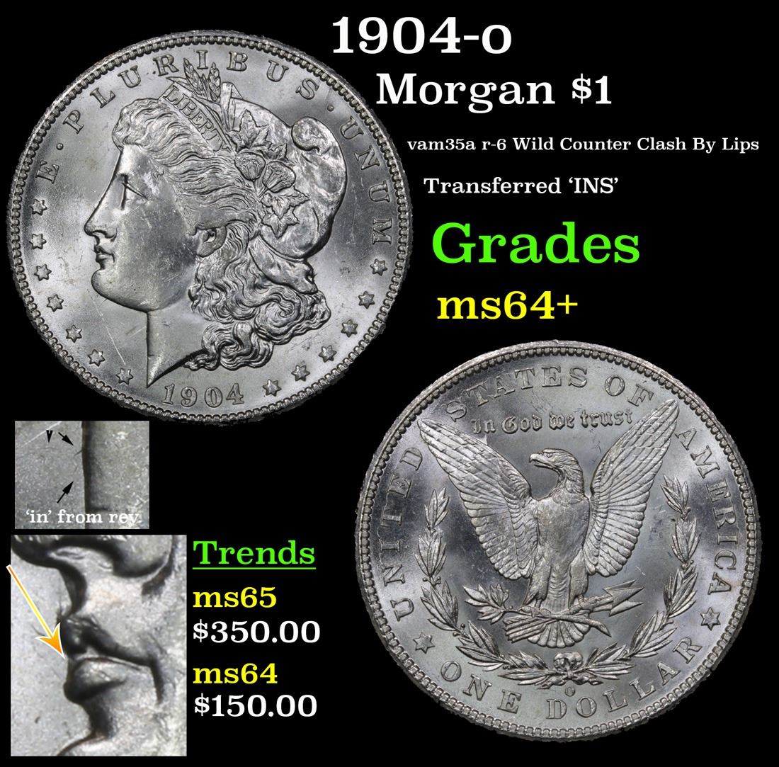 1904-o vam35a r-6 Wild Counter Clash By Lips Transferred 'INS' Morgan Dollar $1 Grades Choice+ Unc. A Corey's Pick, Bid to Win Coin