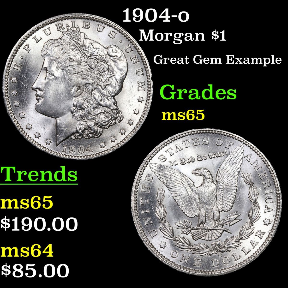 1904-o Morgan Dollar $1 Grades GEM Unc. Great Gem Example