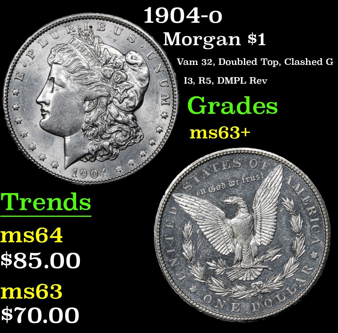 1904-o Vam 32, Doubled Top, Clashed G I3, R5, DMPL Rev Morgan Dollar $1 Grades Select+ Unc.
