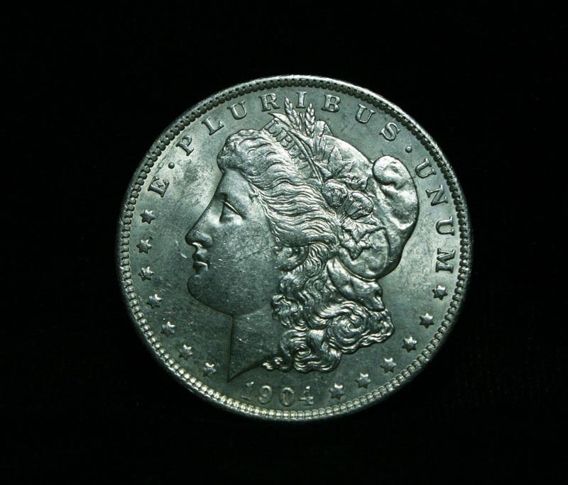 Nice white example with very slight wear at the high points. Virtually complete luster. Estimated Value $50