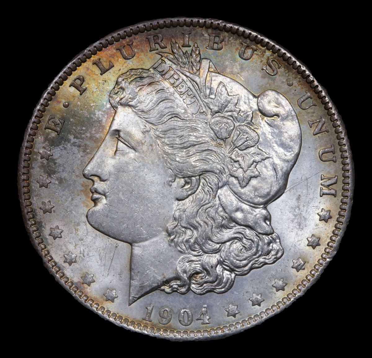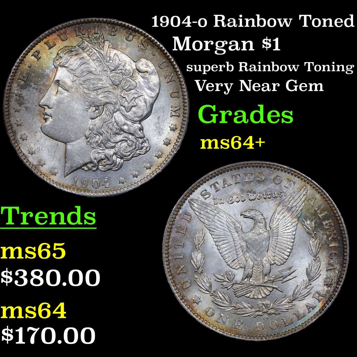 1904-o Rainbow Toned Morgan Dollar $1 Grades Choice+ Unc.
