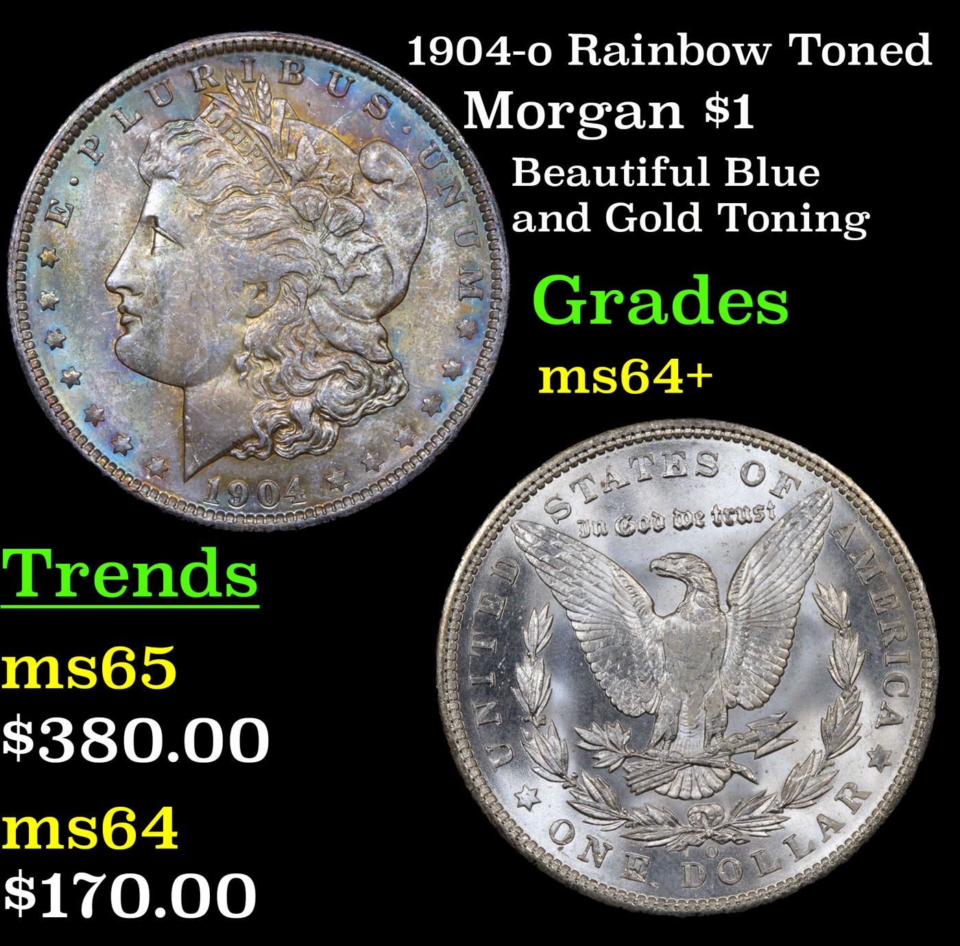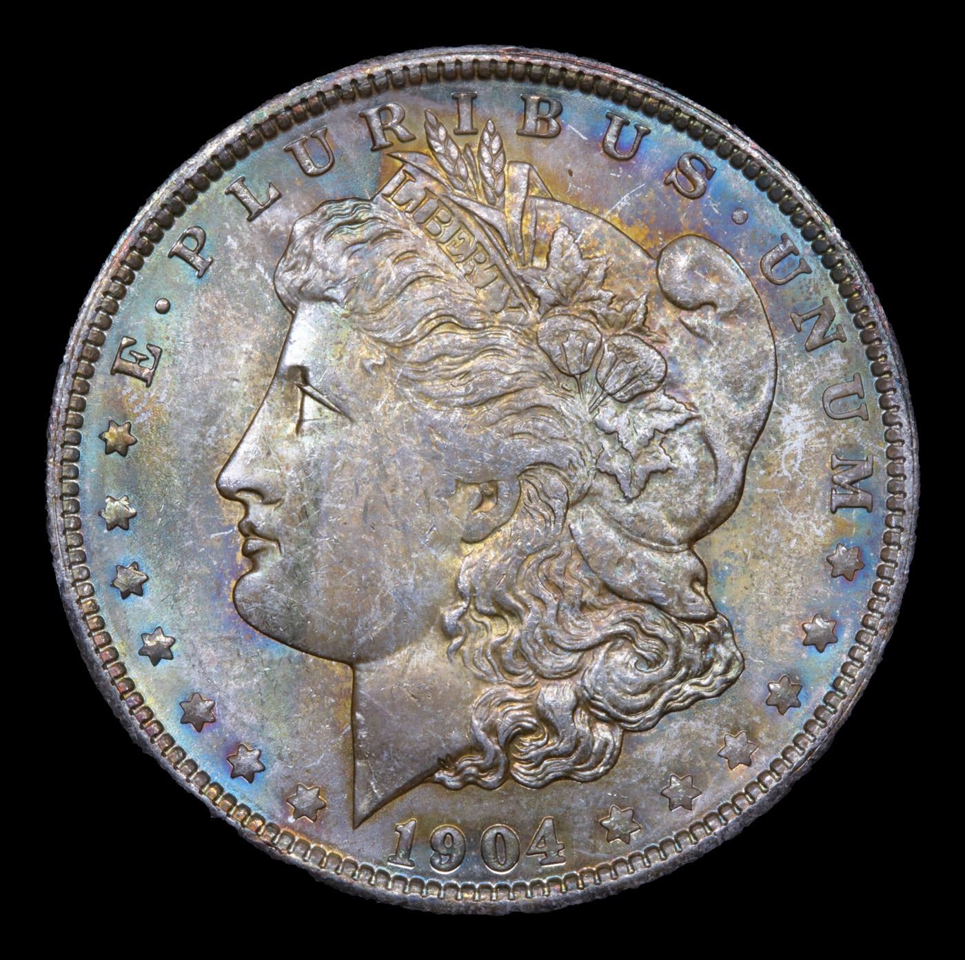 1904-o Rainbow Toned Morgan Dollar $1 Grades Choice+ Unc.