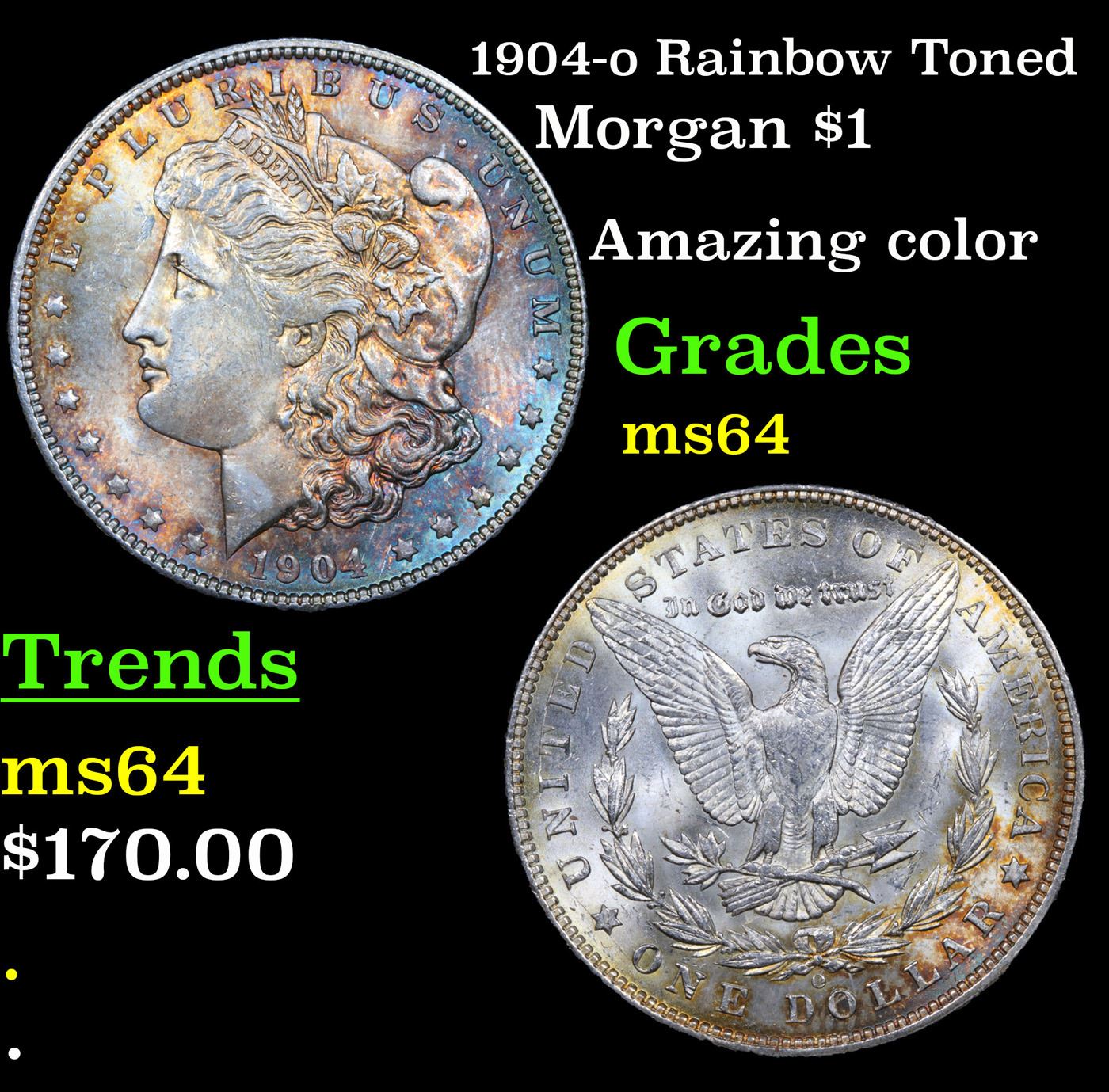 1904-o Rainbow Toned Morgan Dollar $1 Grades Choice Unc.