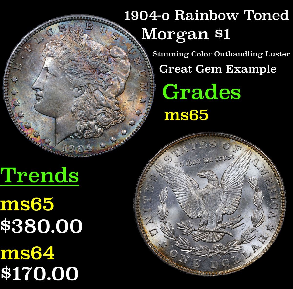 1904-o Rainbow Toned Morgan Dollar $1 Grades GEM Unc.