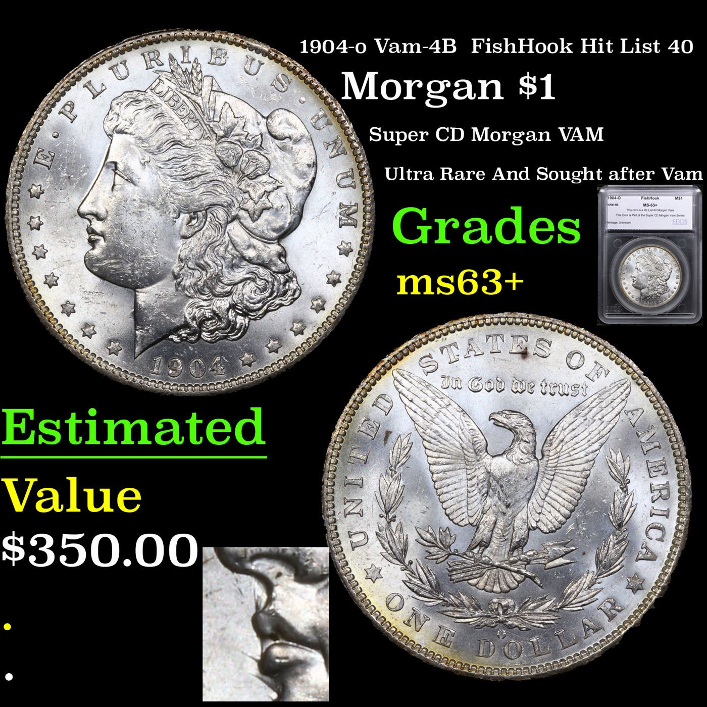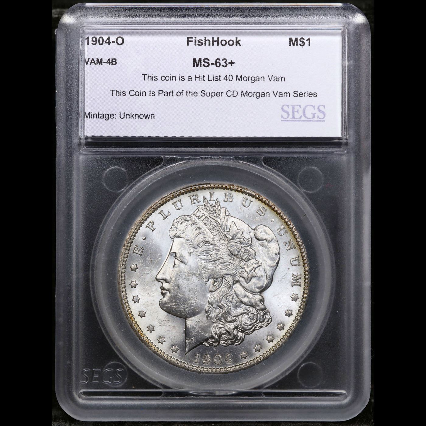 1904-o Vam-4B FishHook Hit List 40 Morgan Dollar $1 Graded ms63+ BY SEGS. A Corey's Pick, Bid to Win, Don't let it get Away Coin