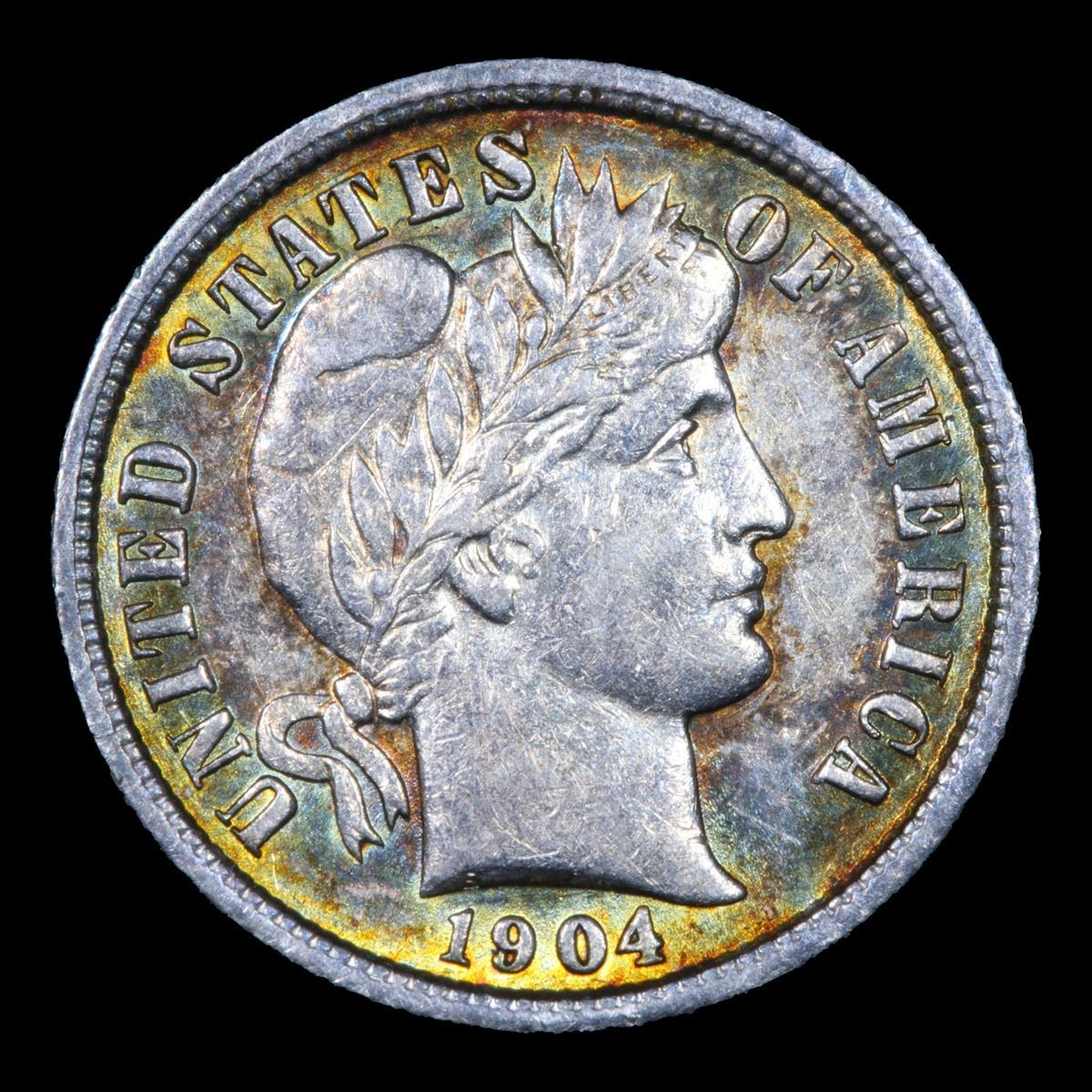 1904-p Nice Colorful Rim Toning Very Near Unc Barber Dime 10c Grades Choice AU/BU Slider.