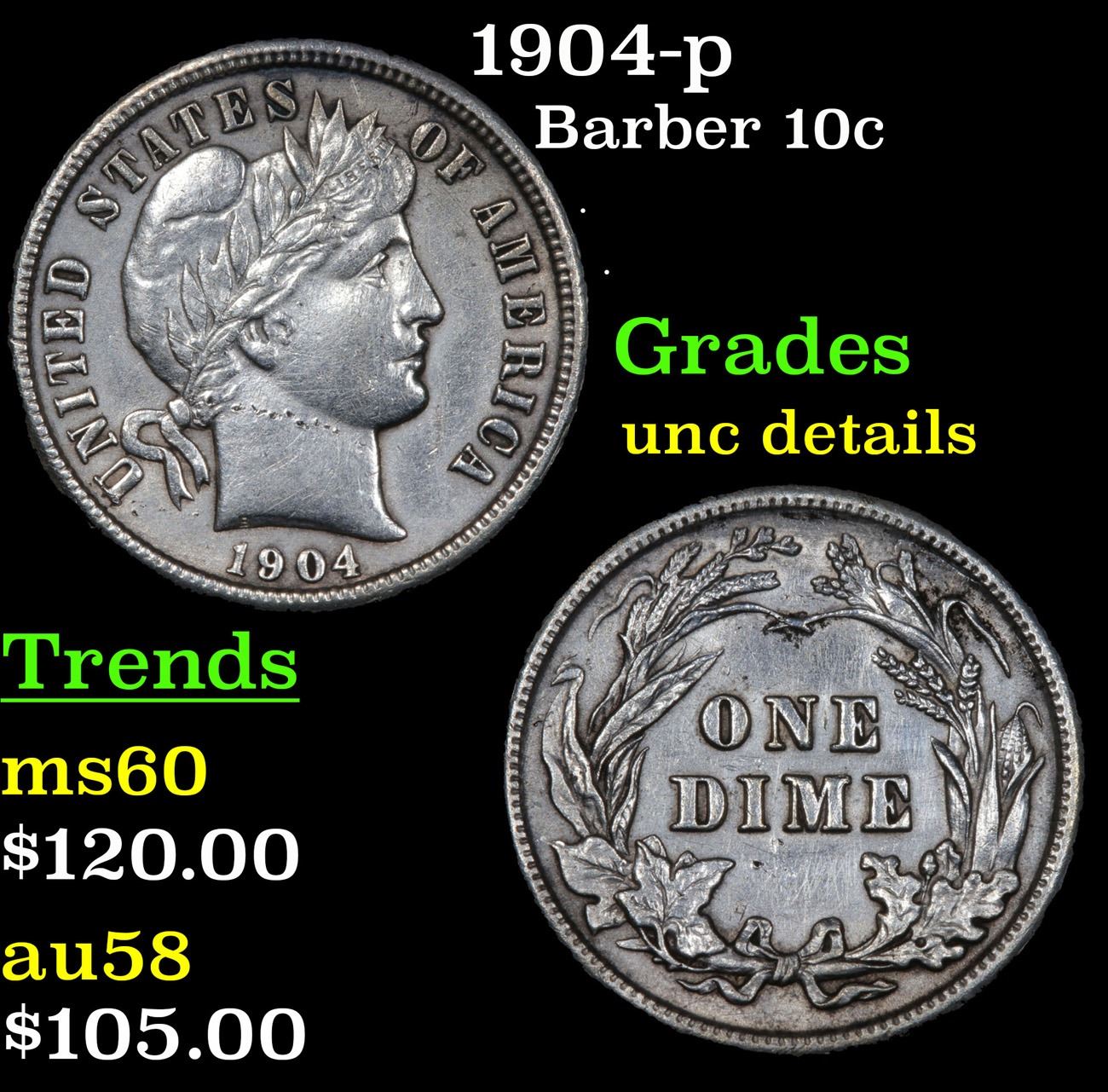 1904-p . . Barber Dime 10c Grades Unc Details.