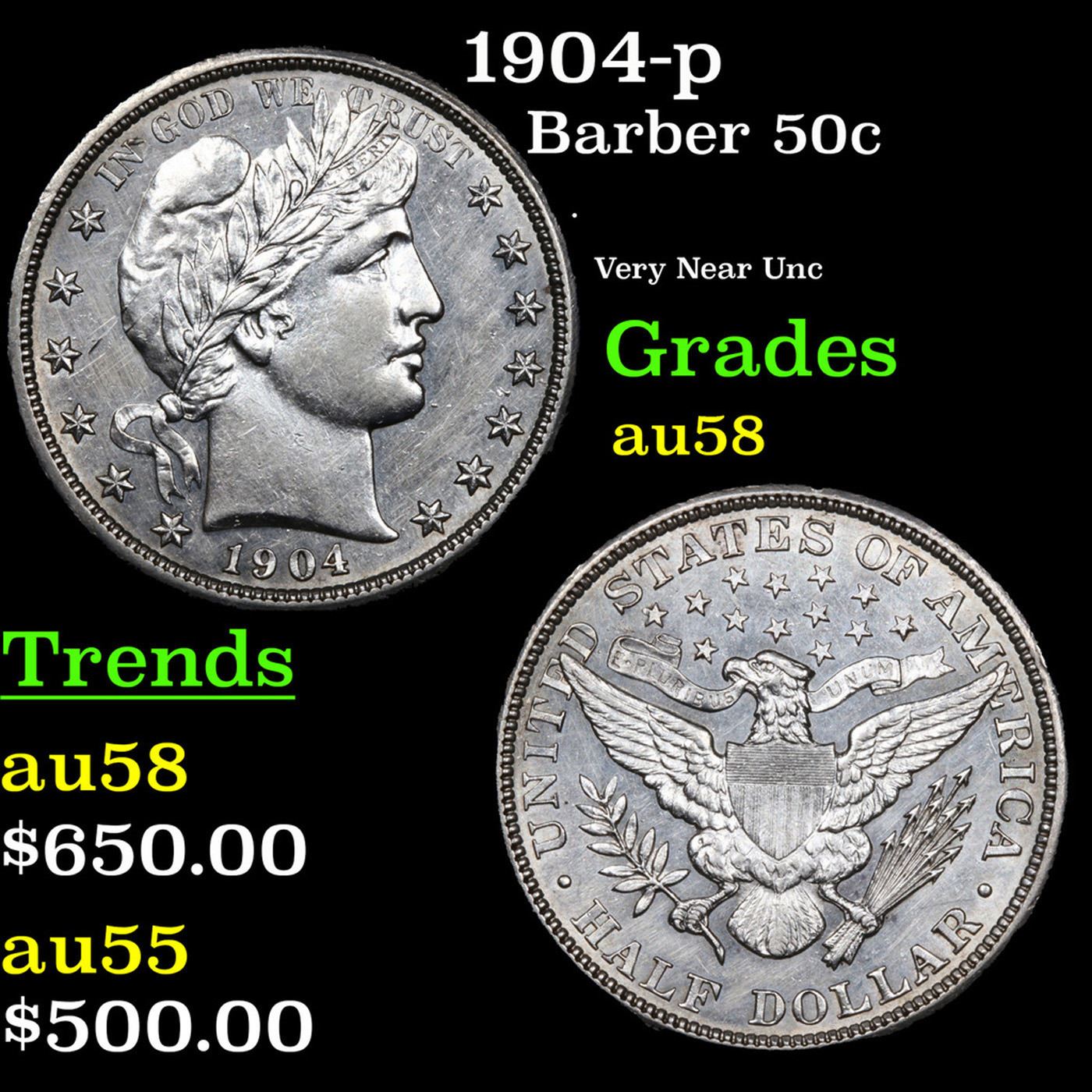 1904-p Barber Half Dollars 50c Grades Choice AU/BU Slider. According to David Akers from PCGS, "This issue is one of the most underrated in the entire series, but its rarity is recognized and appreciated by relatively few."