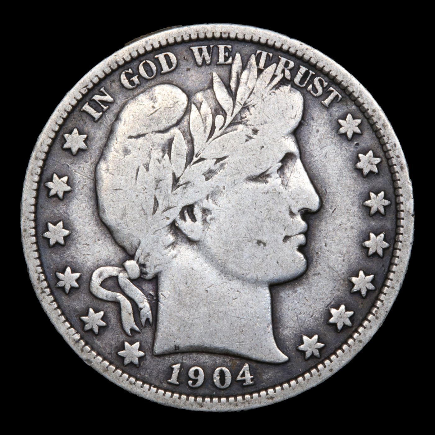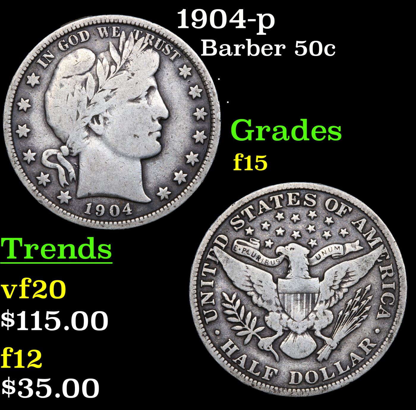 1904-p Barber Half Dollars 50c Grades f+. According to David Akers from PCGS, "This issue is one of the most underrated in the entire series, but its rarity is recognized and appreciated by relatively few."