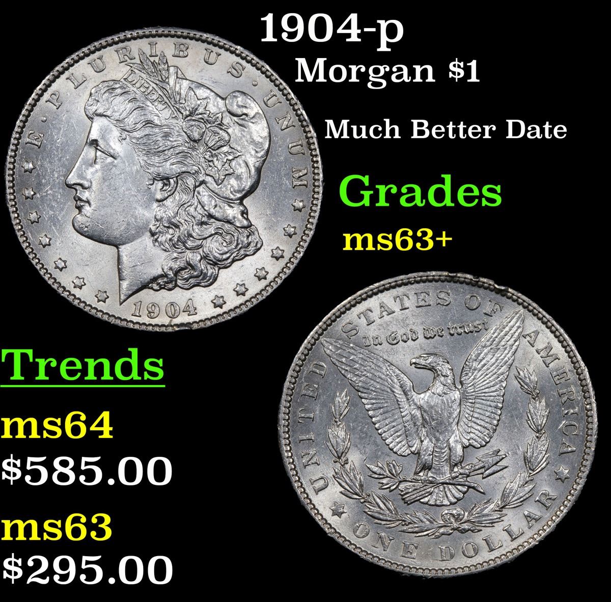 1904-p Much Better Date . Morgan Dollar $1 Grades Select+ Unc.