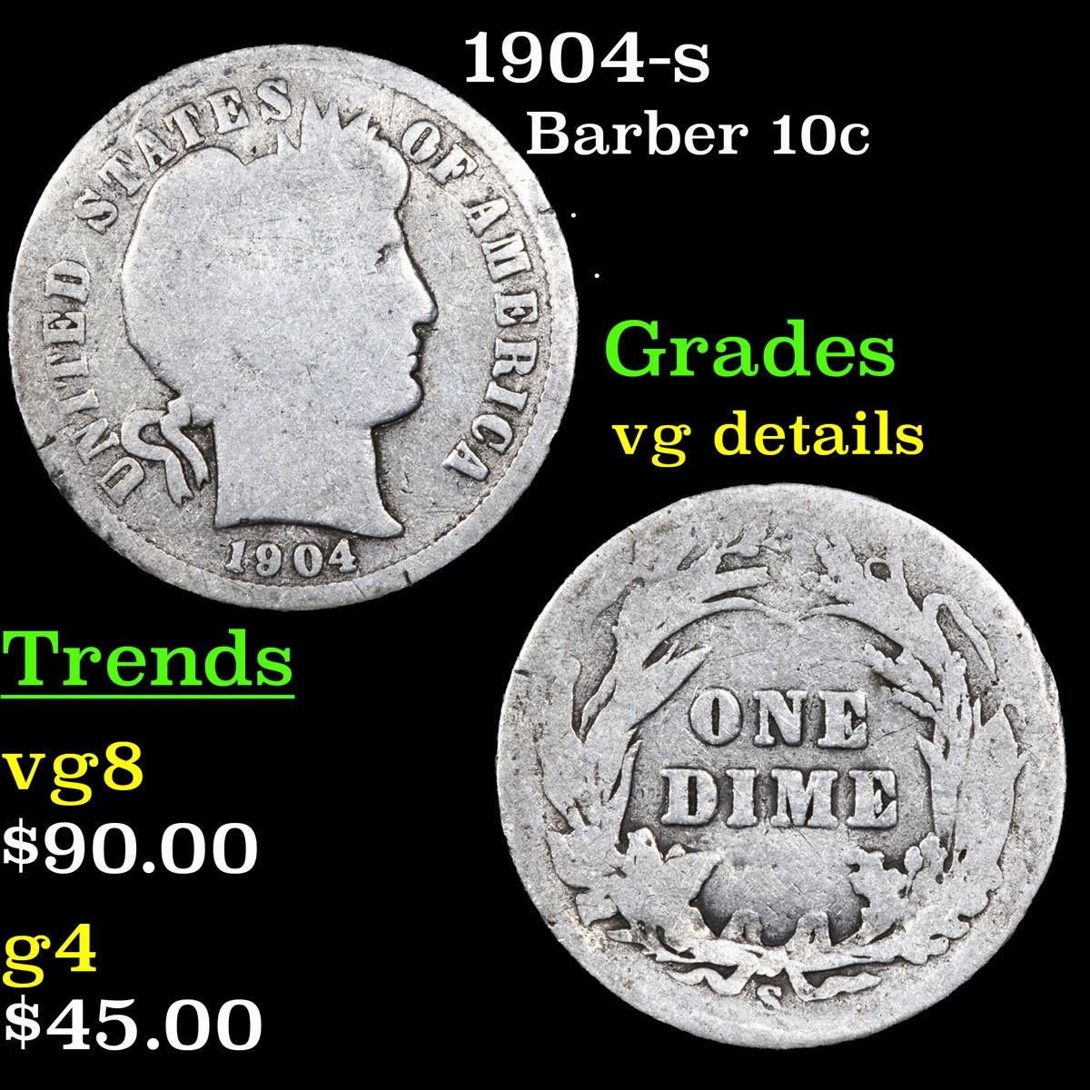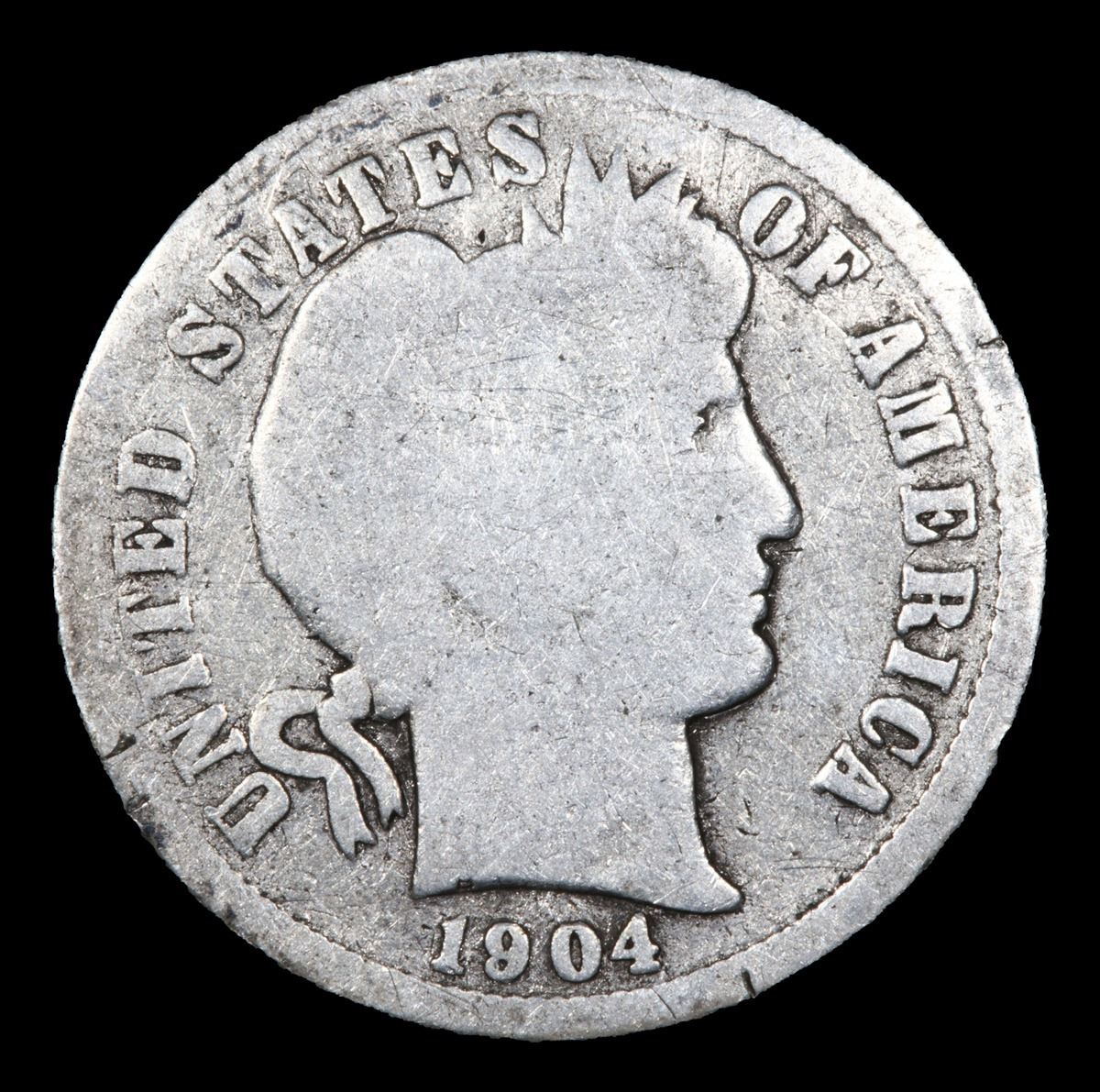 1904-s . . Barber Dime 10c Grades vg details. A better date Barber Dime.