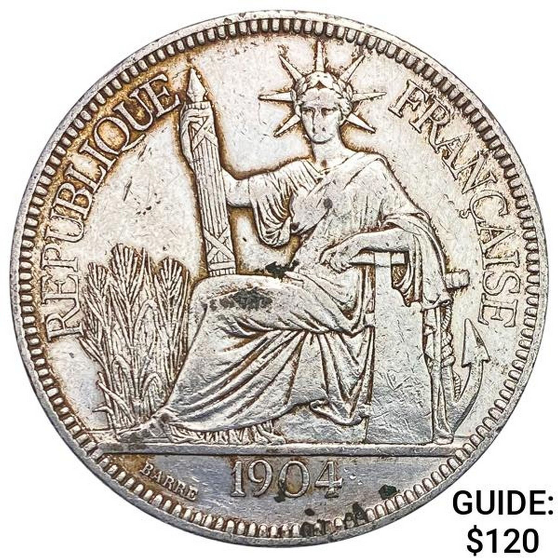 1904A French Indochina 1 Piastre NEARLY UNCIRCULATED