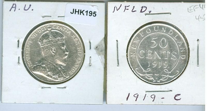 1904H & 1919c Nfld 50¢. Lot of 2 coins both EF.