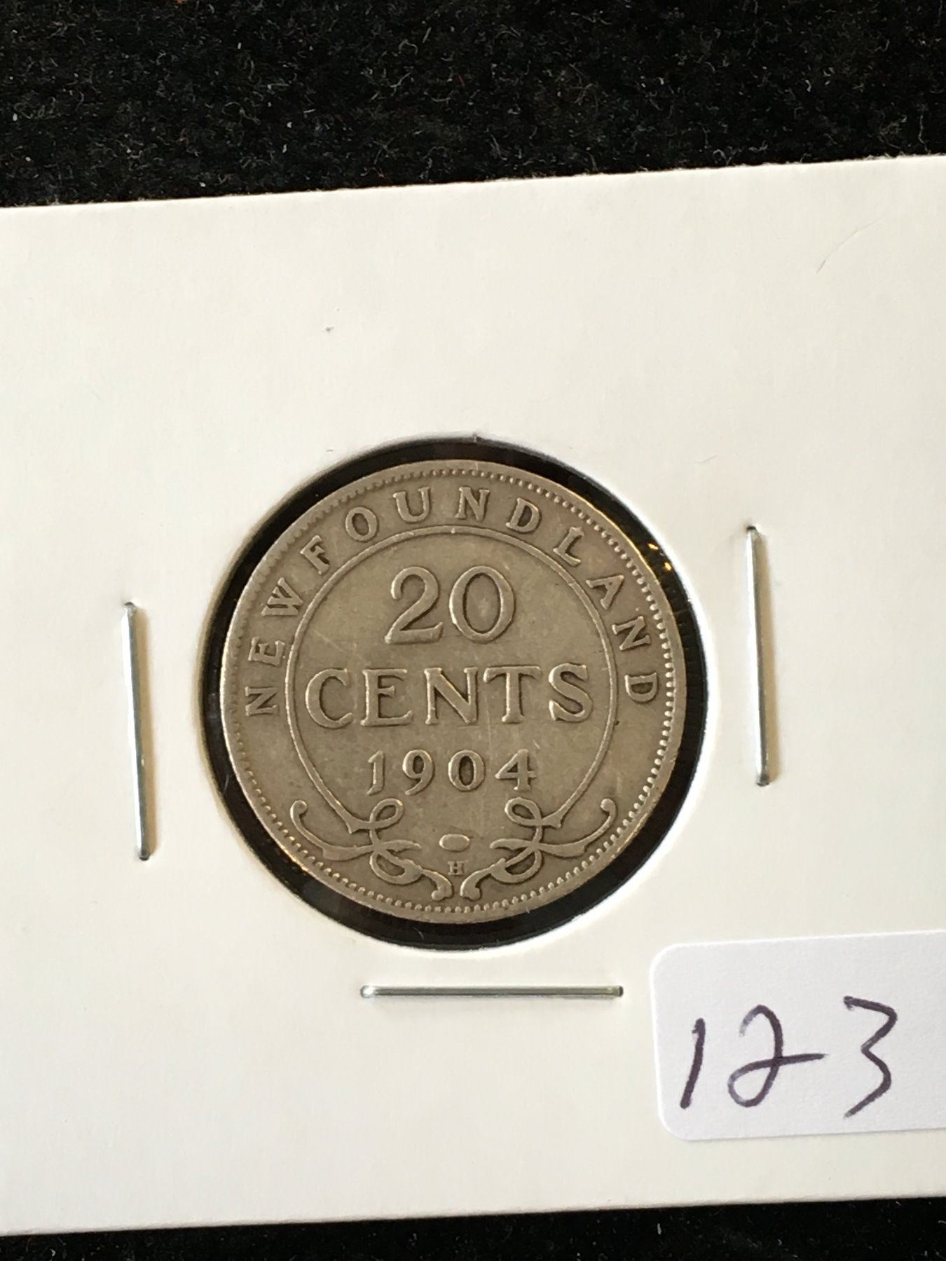 NICE GRADE VG-8 NEWFOUNDLAND 20 CENTS