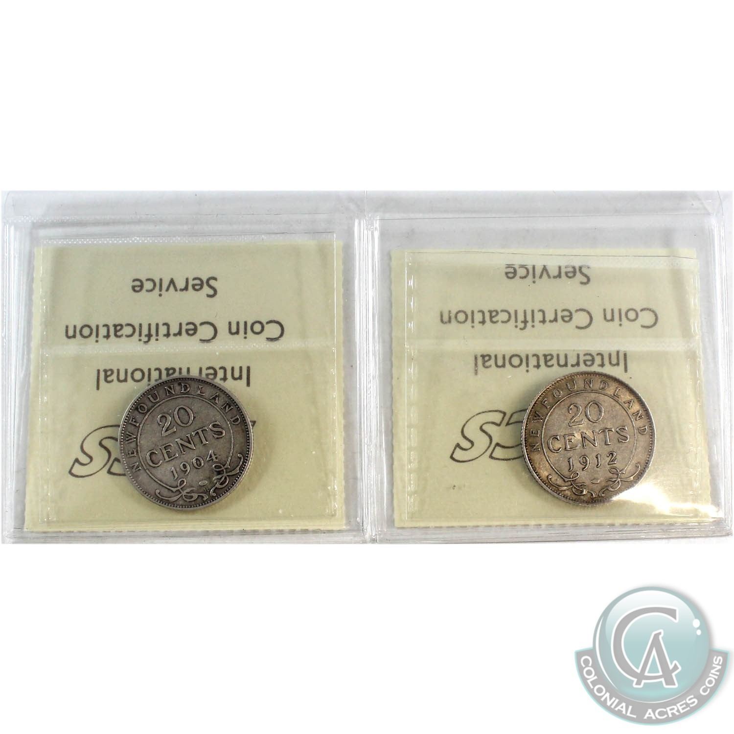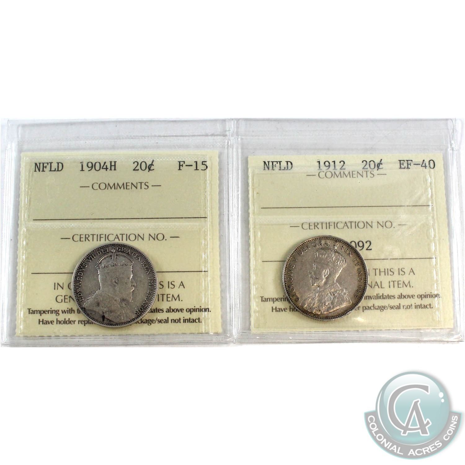 1904H NFLD 20-cent F-15 & 1912 NFLD 20-cent EF-40. Both coins have been ICCS Certified. 2pcs.