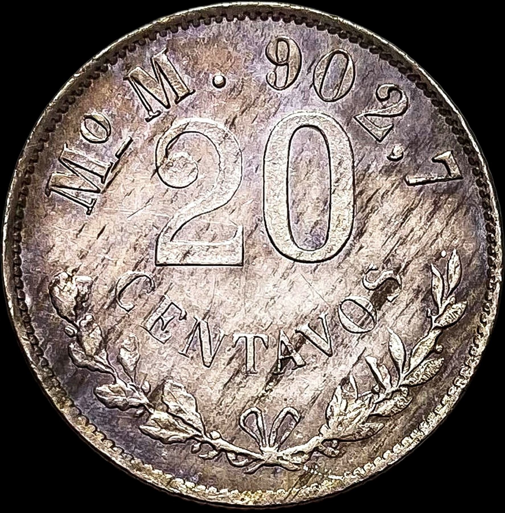 1904Mo-M Silver 20 Centavos Mexico UNCIRCULATED