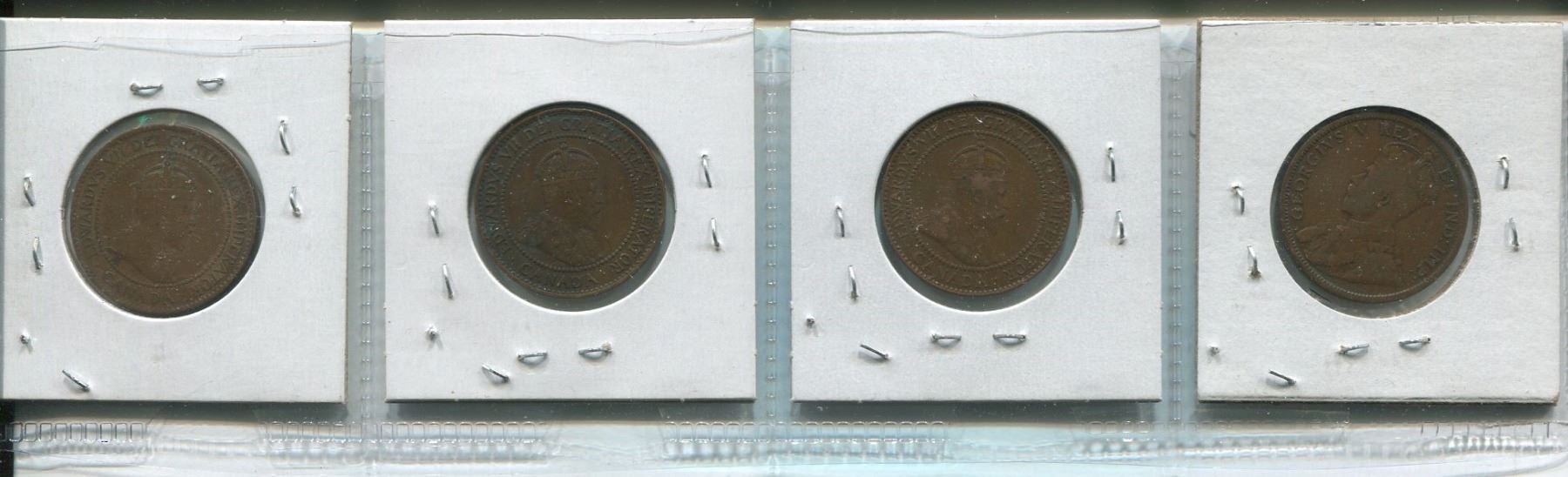 1905,09,10,11,4-Large Canadian penny,King Edward VII, King George V