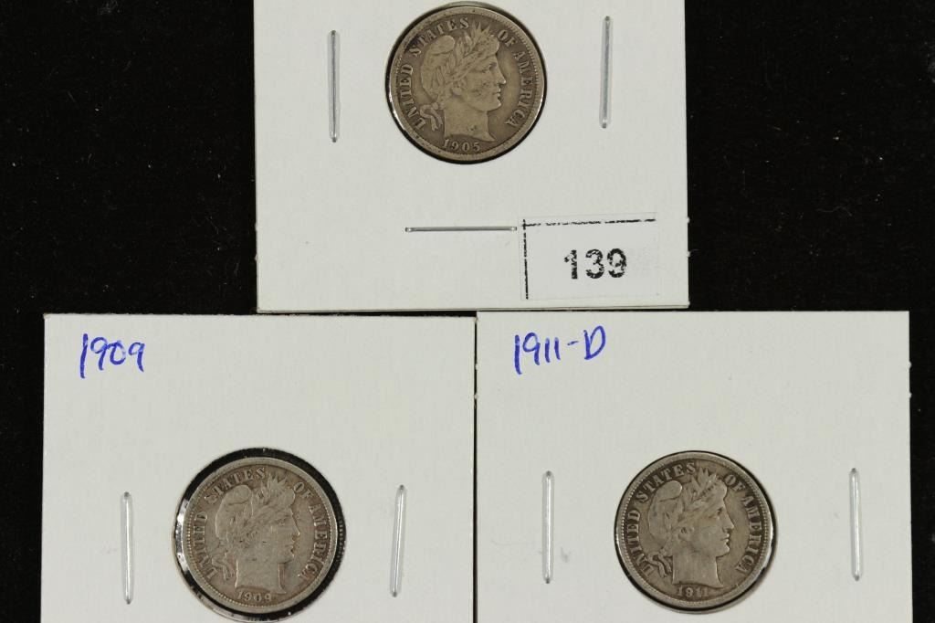 1905,09 & 11-D BARBER DIMES ALL (FINE)