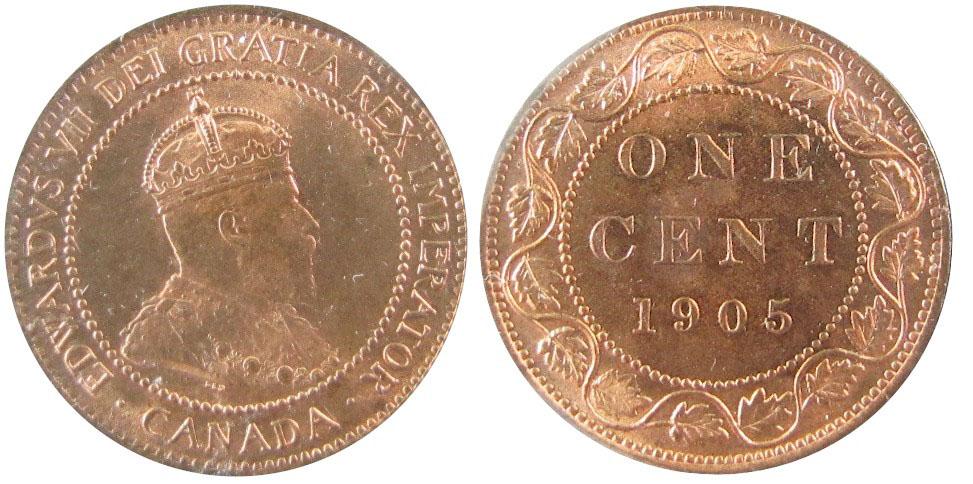 1905 1¢ ICCS MS65RD. 90% red and lustrous.