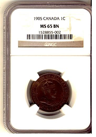 1905 1¢ NGC MS65BN. Lots of lustre and great fields.