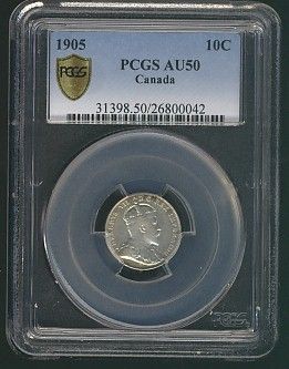 1905 10 Cents, PCGS AU50. Lots of lustre.