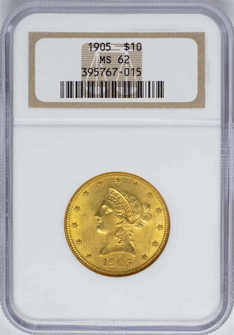 One 1905 $10 Liberty Head Eagle Gold Coin NGC MS62. NGC Certified.