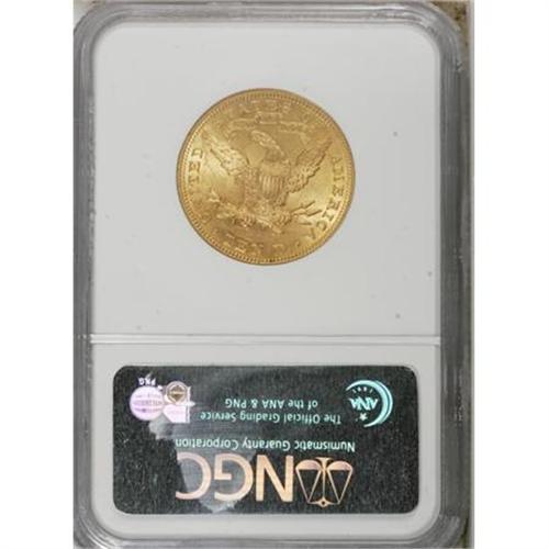 <B>1905 $10 MS62 NGC.</B></I> NGC Census: (526/285). PCGS Population (390/242). Mintage: 200,900. Numismedia Wsl. Price for NGC/PCGS coin in MS62: $395. (#8757)<BR><BR><B>Coin Engraver:</B> Christian Gobrecht<BR><BR><b>Shipping:</b> Coins & Currency (<a target="_blank" href="http://www.heritageauctions.com/common/shipping.php">view shipping information</a>\)