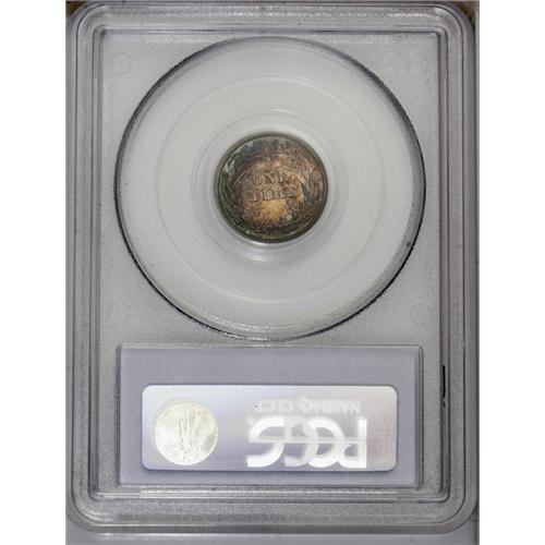<B>1905<10C> PR64 PCGS.</B></I> A glittering near-Gem quality proof example with mirrored fields and lustrous devices visible beneath splendid iridescent toning. A few faint slide marks on Liberty's cheek are all that prevent a Gem grade determination.