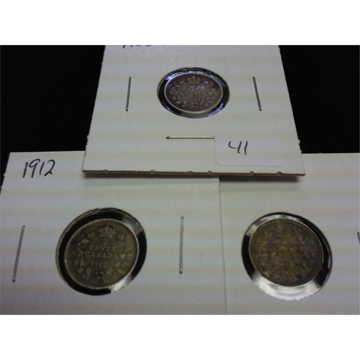 1905,12 & 19 CANADA FIVE CENTS (SILVER)