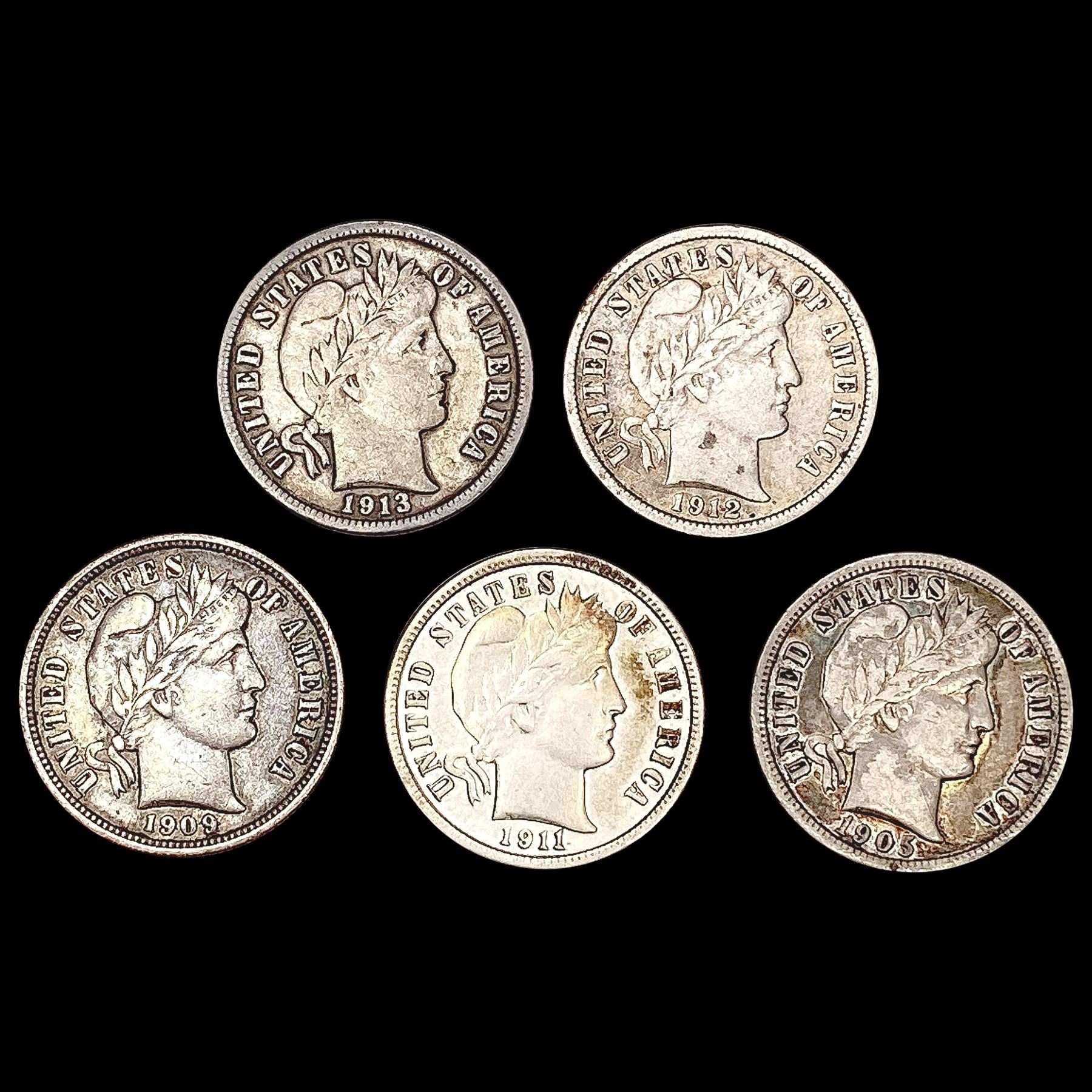 1905-1903 Barber Dime Collection [5 Coins] HIGH GRADE