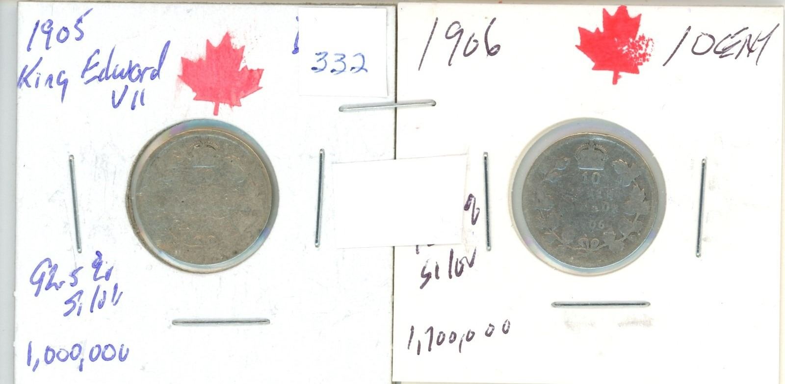 1905, 1906 & 10 cent 92,5% King Edward VII low mintage Part of 2020 recall by Govt of Canada