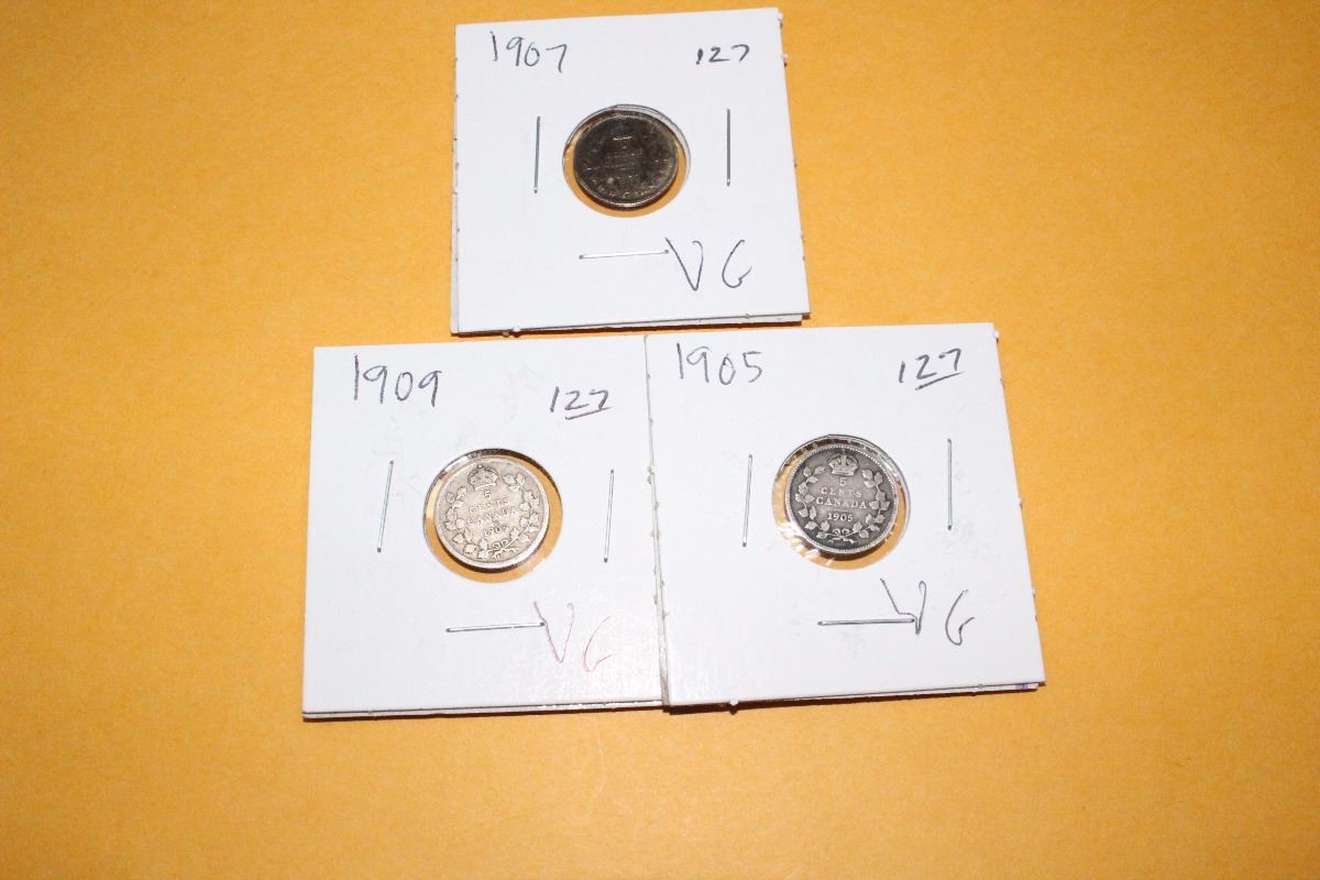 1905; 1907; 1909 Cdn. Small Five Cent Coins