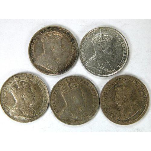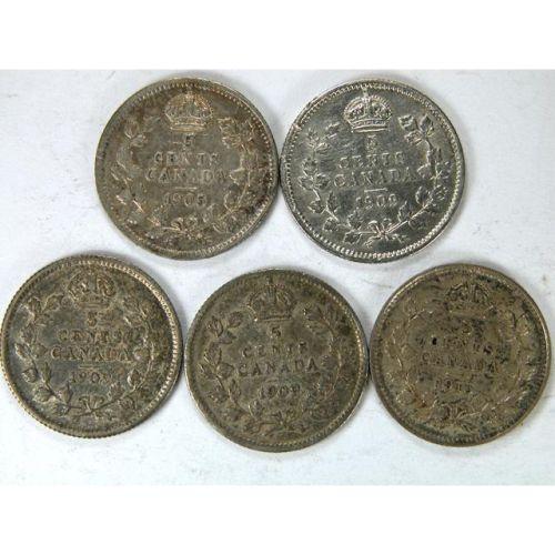 1905, 1909 Round Leaves two pieces, 1909 Pointed Leaves and 1915. Total five pieces, all VF-EF