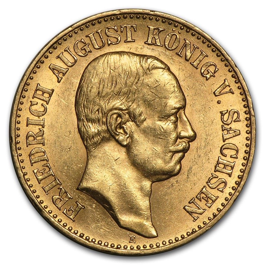 1905-1914 Germany Gold 20 Mark Saxony Friedrich August Avg Circ