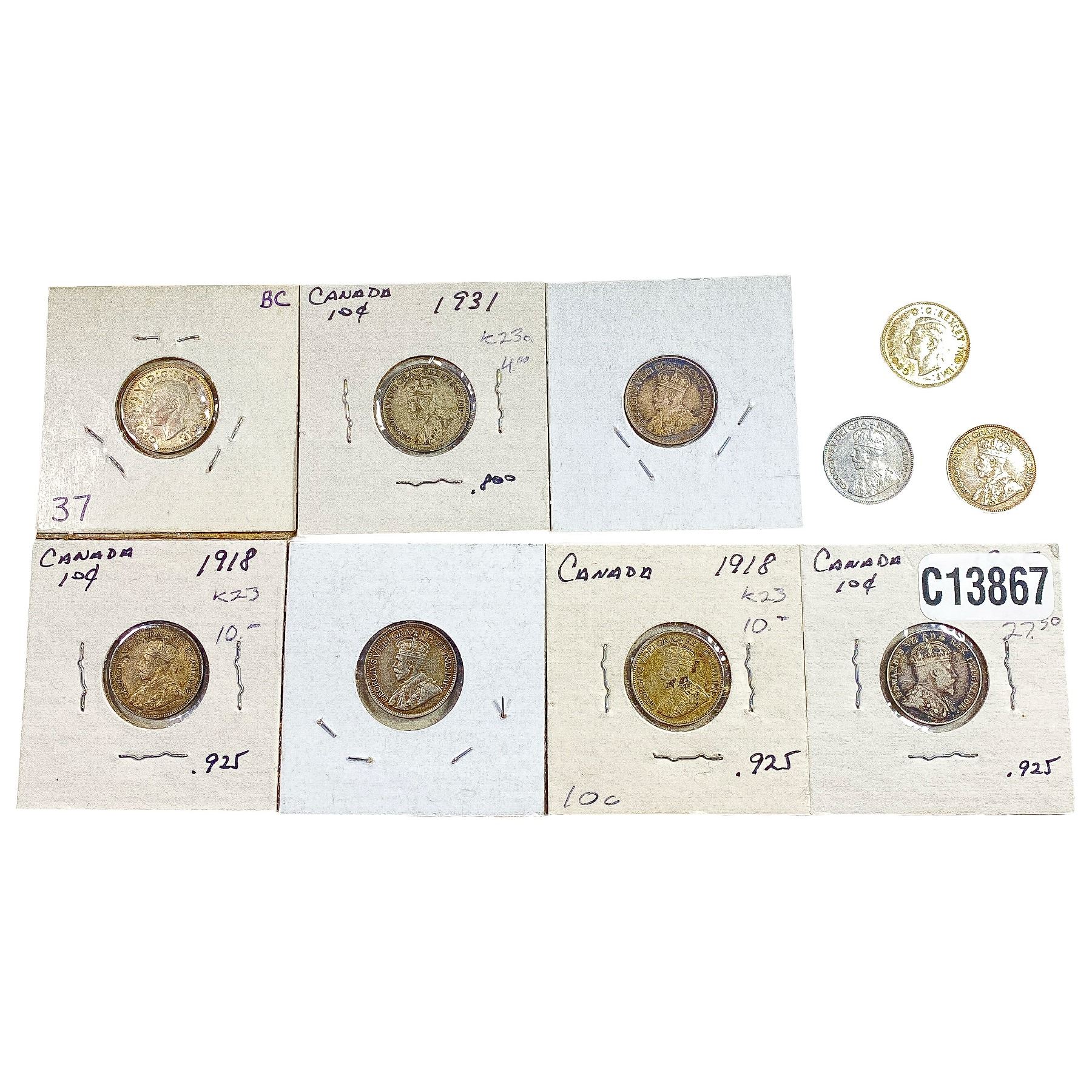 1905-1937 HIGH GRADE Canada Dime [10 Coins]