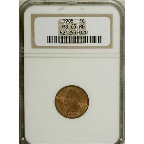 <B>1905 1C MS65 Red NGC.</B></I> A delightful, shimmering representative of this 20th century issue, dusky copper-orange with smooth surfaces befitting a Gem. Well-defined with immense eye appeal.<B><BR></B></I><I>From The Santa Fe Collection.</B></I><BR><BR><B>Coin Engraver:</B> James B. Longacre<BR><BR><b>Shipping:</b> Coins & Currency (<a target="_blank" href="http://www.heritageauctions.com/common/shipping.php">view shipping information</a>\)