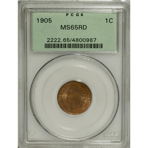 <B>1905 1C MS65 Red PCGS.</B></I> PCGS Population (134/32). NGC Census: (181/62). Mintage: 80,719,160. Numismedia Wsl. Price: $420. (#2222)<BR><BR><b>Shipping:</b> Coins & Currency (<a target="_blank" href="http://www.heritageauctions.com/common/shipping.php">view shipping information</a>)