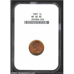 1905 1C MS66 Red NGC. Some interesting steel-gray highlights decorate the higher points of the design, but the dominant color on both sides is an intense crimson-red shade. The strike is razor sharp in virtually all areas, and there are no distracting features that would seem to call into question the validity of the Gem designation. An aesthetically pleasing coin with unquestionable originality.From the Joseph P. Gorrell Collection. Important notice: We expect to be auctioning lots at the rate of 200-250 per hour. Sometimes eBay Premier live bid software cannot keep up with that pace, so we strongly recommend that you place a realistic proxy bid now as insurance to avoid disappointment. Also please note that all Heritage/CAA lots purchased through eBay Premier carry a 20% Buyer's Premium. Please make sure you read the Terms and Conditions.