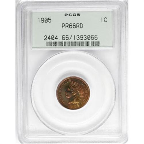 <B>1905 1C PR66 Red PCGS.</B></I> This attractive, fully red Premium Gem displays a medley of copper-gold and crimson color that changes hues as the piece is rotated beneath a light source. A solid strike complements these gorgeous attributes, and impeccably preserved surfaces add to the outstanding eye appeal. Encapsulated in a green-label holder. Population: 13 in 66 Red, 2 finer (12/07).<BR><BR><B>Coin Engraver:</B> James B. Longacre<BR><BR><b>Shipping:</b> Coins & Currency (<a target="_blank" href="http://www.heritageauctions.com/common/shipping.php">view shipping information</a>)