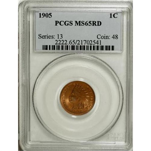 <B>1905 1C MS65 Red PCGS.</B></I> PCGS Population (140/34). NGC Census: (182/60). Mintage: 80,719,160. Numismedia Wsl. Price for NGC/PCGS coin in MS65: $420. (#2222)<BR><BR><B>Coin Engraver:</B> James B. Longacre<BR><BR><b>Shipping:</b> Coins & Currency (<a target="_blank" href="http://www.heritageauctions.com/common/shipping.php">view shipping information</a>)