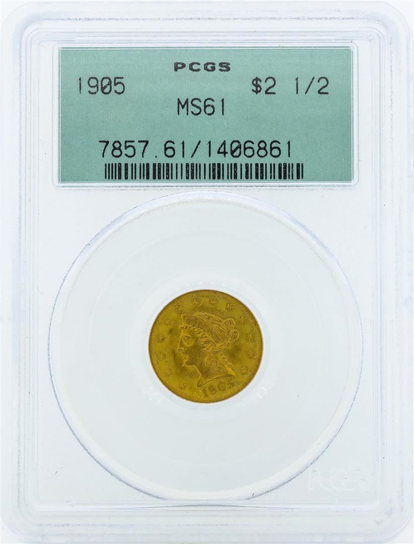 One 1905 $2 1/2 Liberty Head Quarter Eagle Gold Coin PCGS MS61. PCGS Graded.