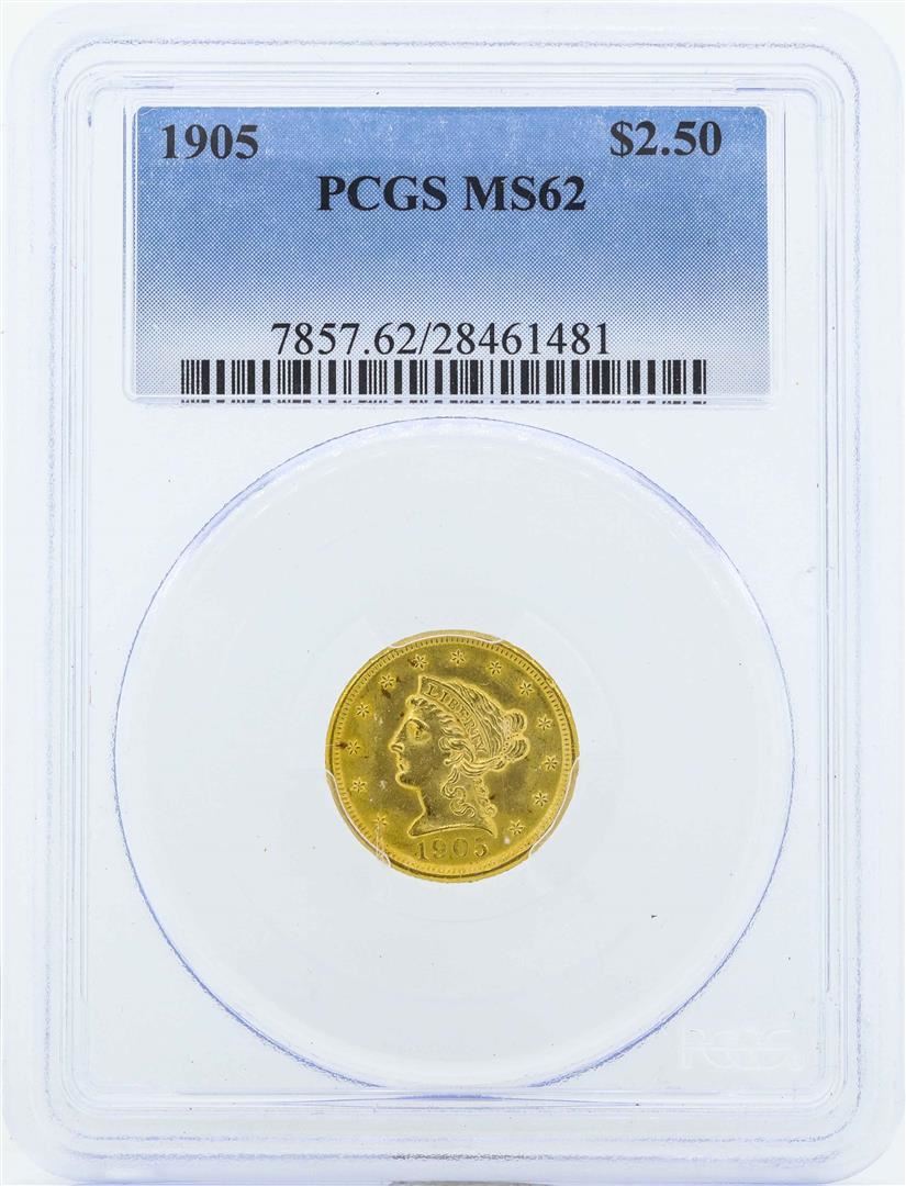 One 1905 $2 1/2 Liberty Head Quarter Eagle Gold Coin PCGS MS62. PCGS Graded.
