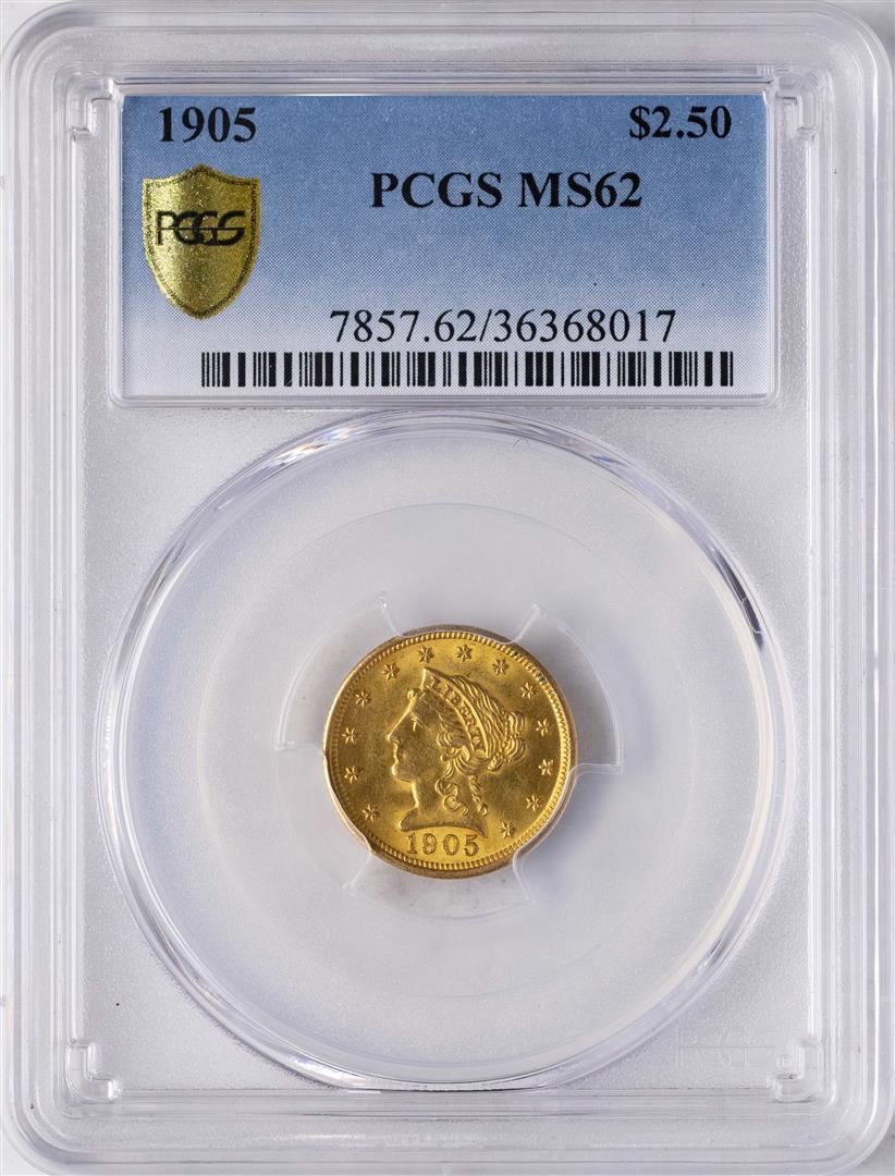 One 1905 $2 1/2 Liberty Head Quarter Eagle Gold Coin PCGS MS62. PCGS Graded.