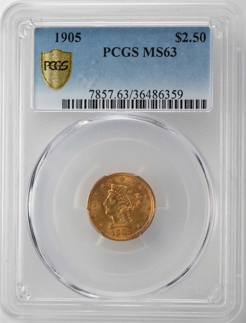 One 1905 $2 1/2 Liberty Head Quarter Eagle Gold Coin PCGS MS63. PCGS Graded.