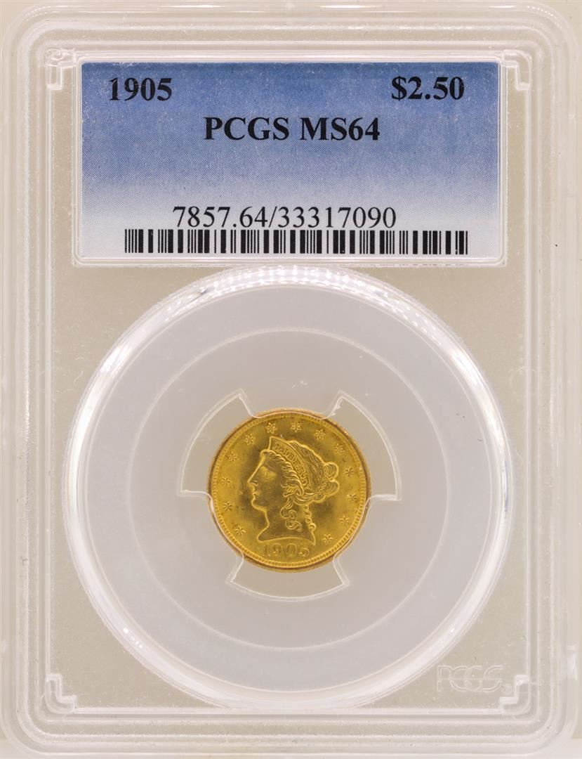 One 1905 $2 1/2 Liberty Head Quarter Eagle Gold Coin PCGS MS64. PCGS Certified.