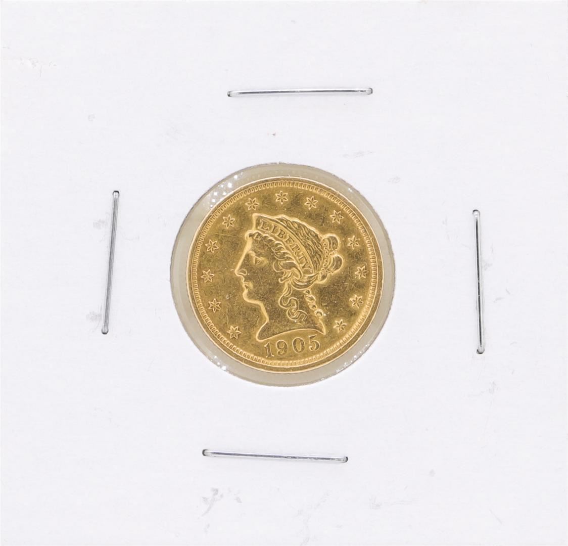 One 1905 $2 1/2 Liberty Head Quarter Eagle Gold Coin.